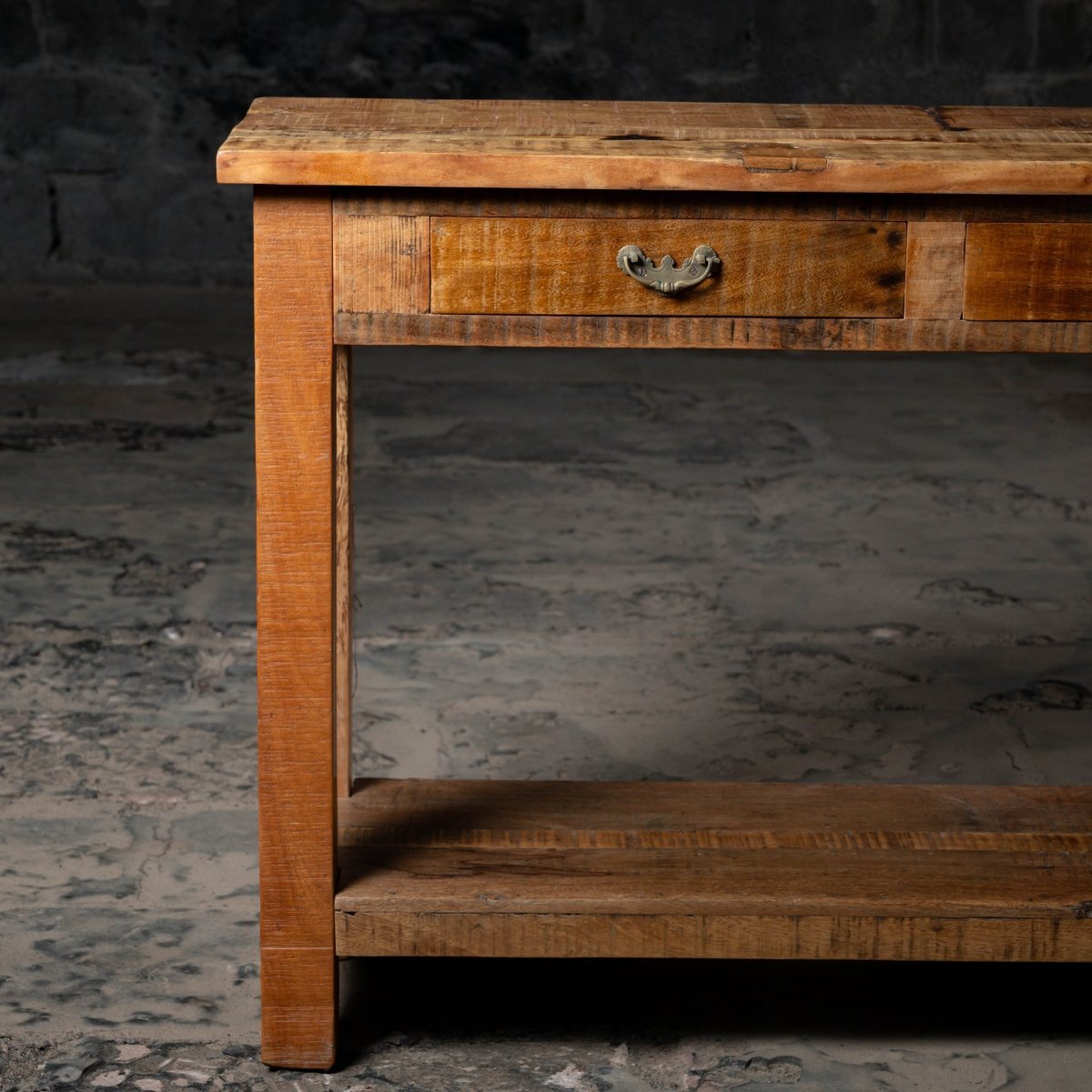 Each console table is meticulously handcrafted using premium reclaimed wood, ensuring durability and sustainability. The natural imperfections and unique grain patterns of the wood make every piece one-of-a-kind. By choosing this console table, you're not only adding a beautiful piece of furniture to your home but also supporting eco-friendly practices.