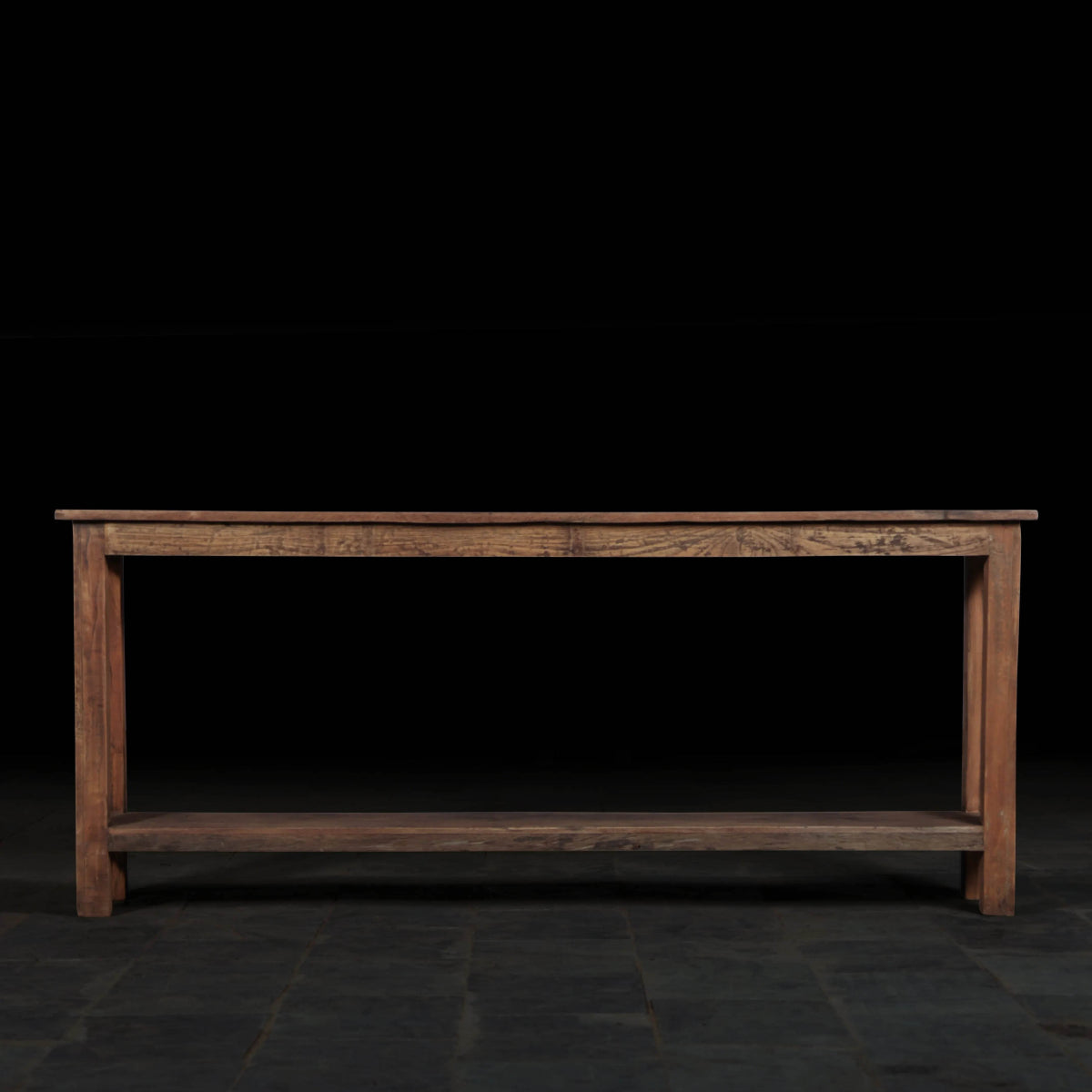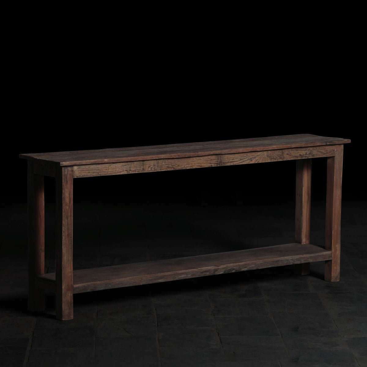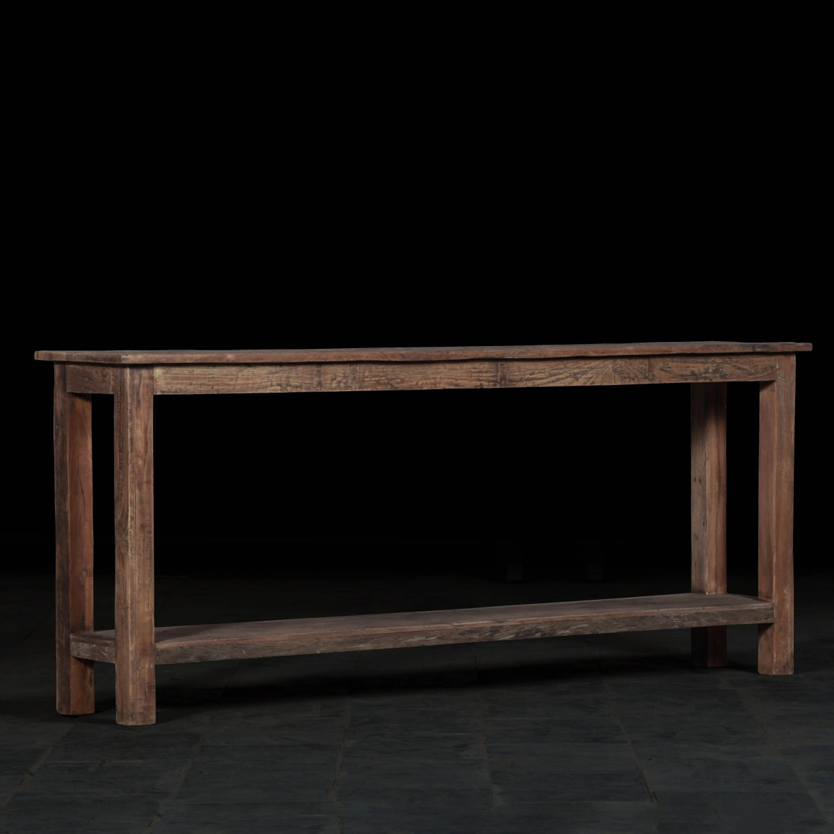 The console features a natural raw finish, highlighting the authentic beauty of the reclaimed wood. This finish enhances the wood's natural grains and textures, adding character and warmth to your space.