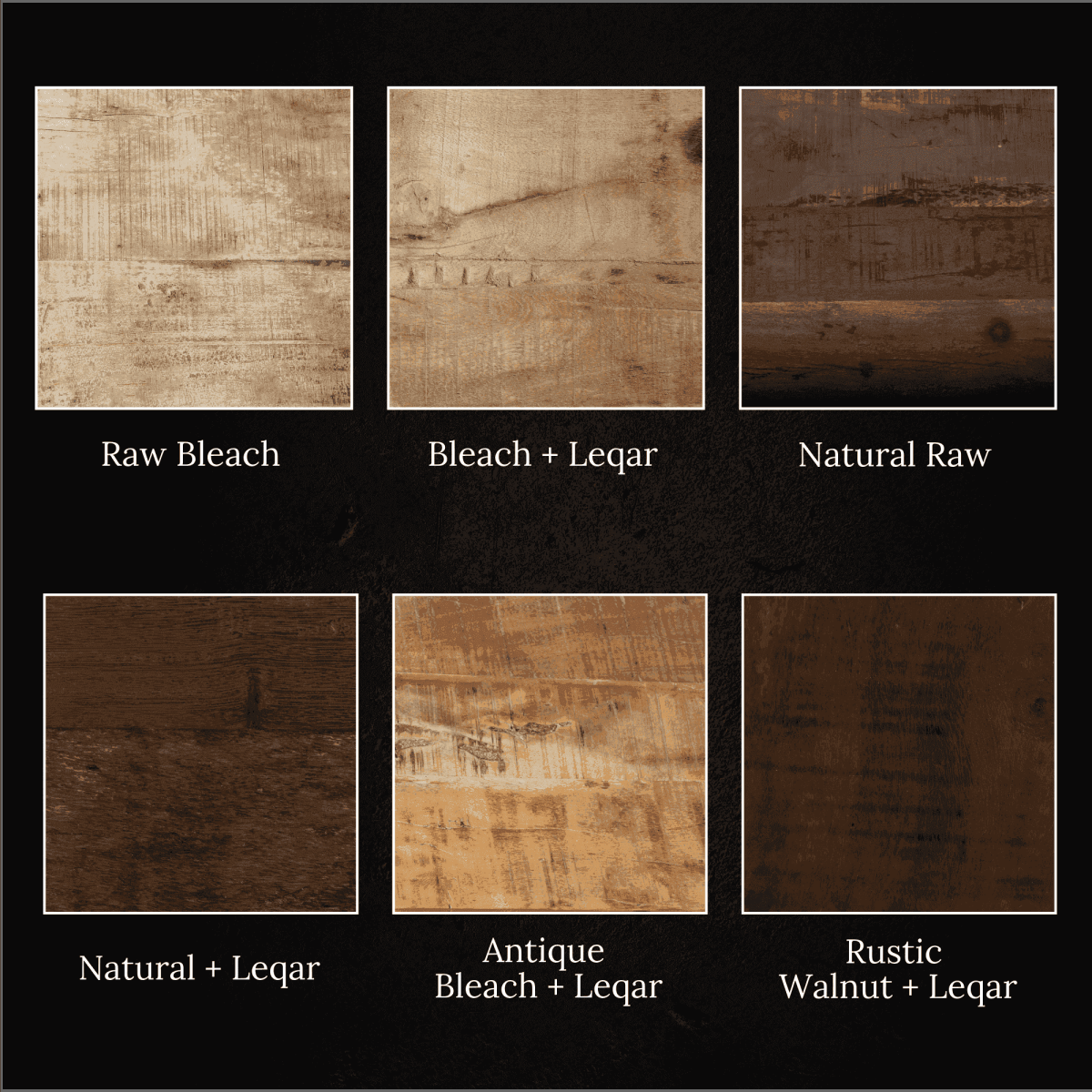 Reclaimed wood : Please note that our reclaimed wood products are crafted from salvaged materials, which may include variations in color, texture, and grain. These natural imperfections are inherent to the beauty of reclaimed wood and contribute to its unique character.