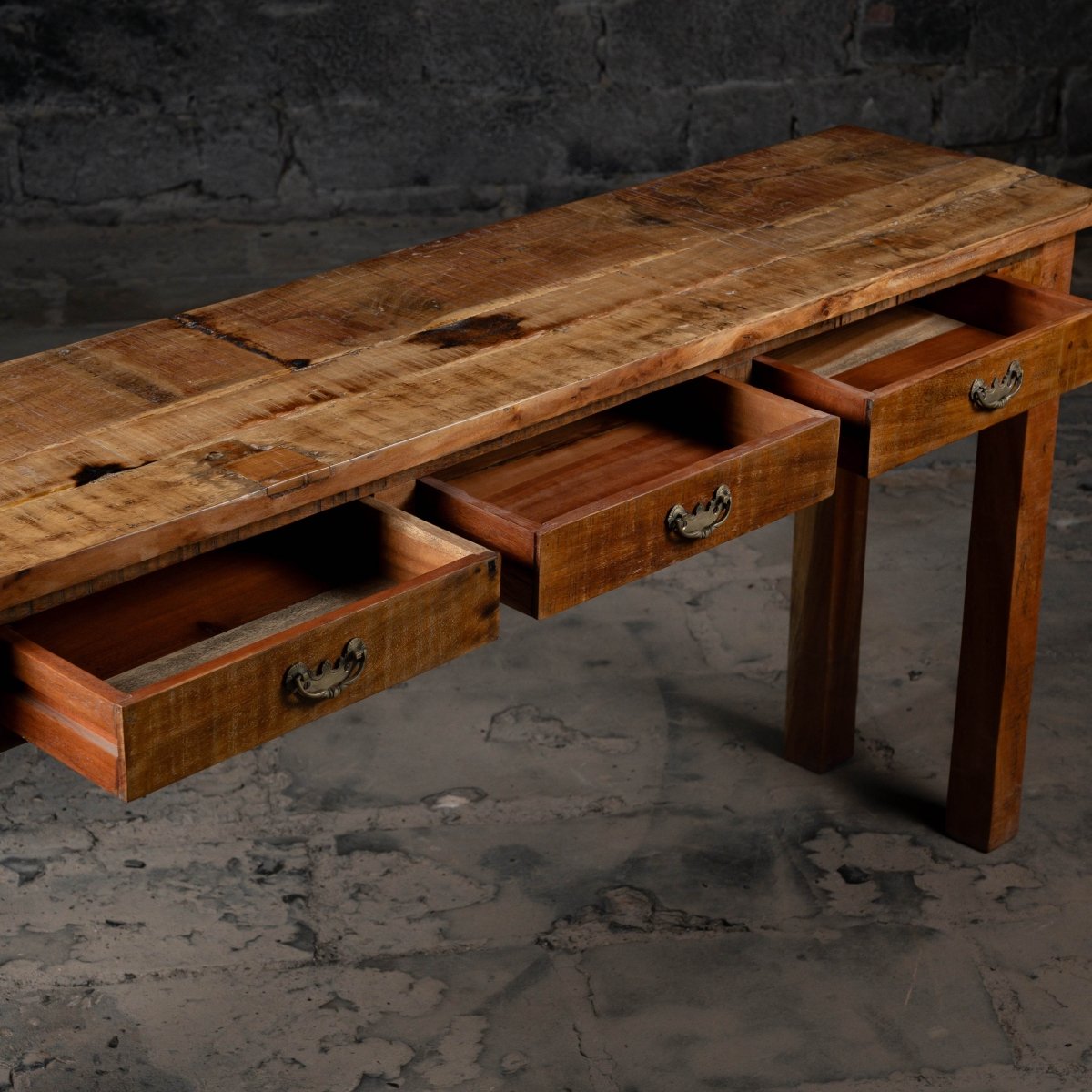 The Vintage Reclaimed Wood Console Table is meticulously handcrafted using premium reclaimed wood, ensuring durability and sustainability. Each piece showcases the natural imperfections and unique grain patterns of the wood, making it a one-of-a-kind addition to your home.