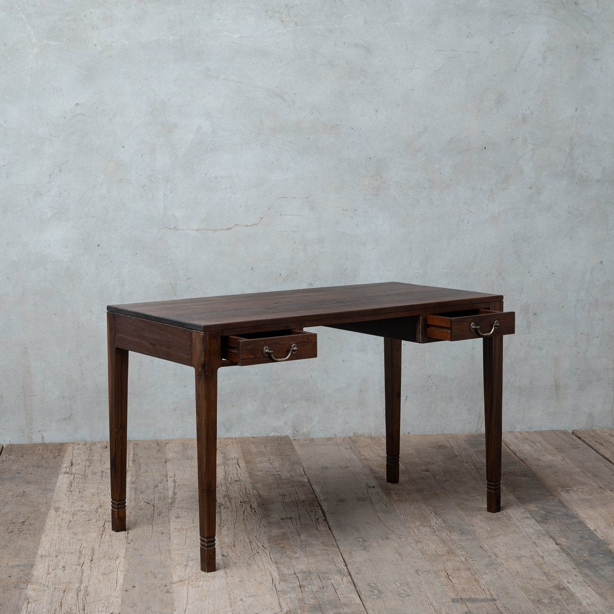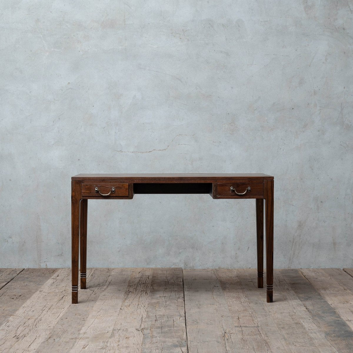 The Vinci Study Table, crafted from reclaimed teakwood with tapered legs and a dark walnut finish, blends style and practicality. Its knock-down design and spacious drawers make it perfect for home offices, study rooms, or kids' rooms.