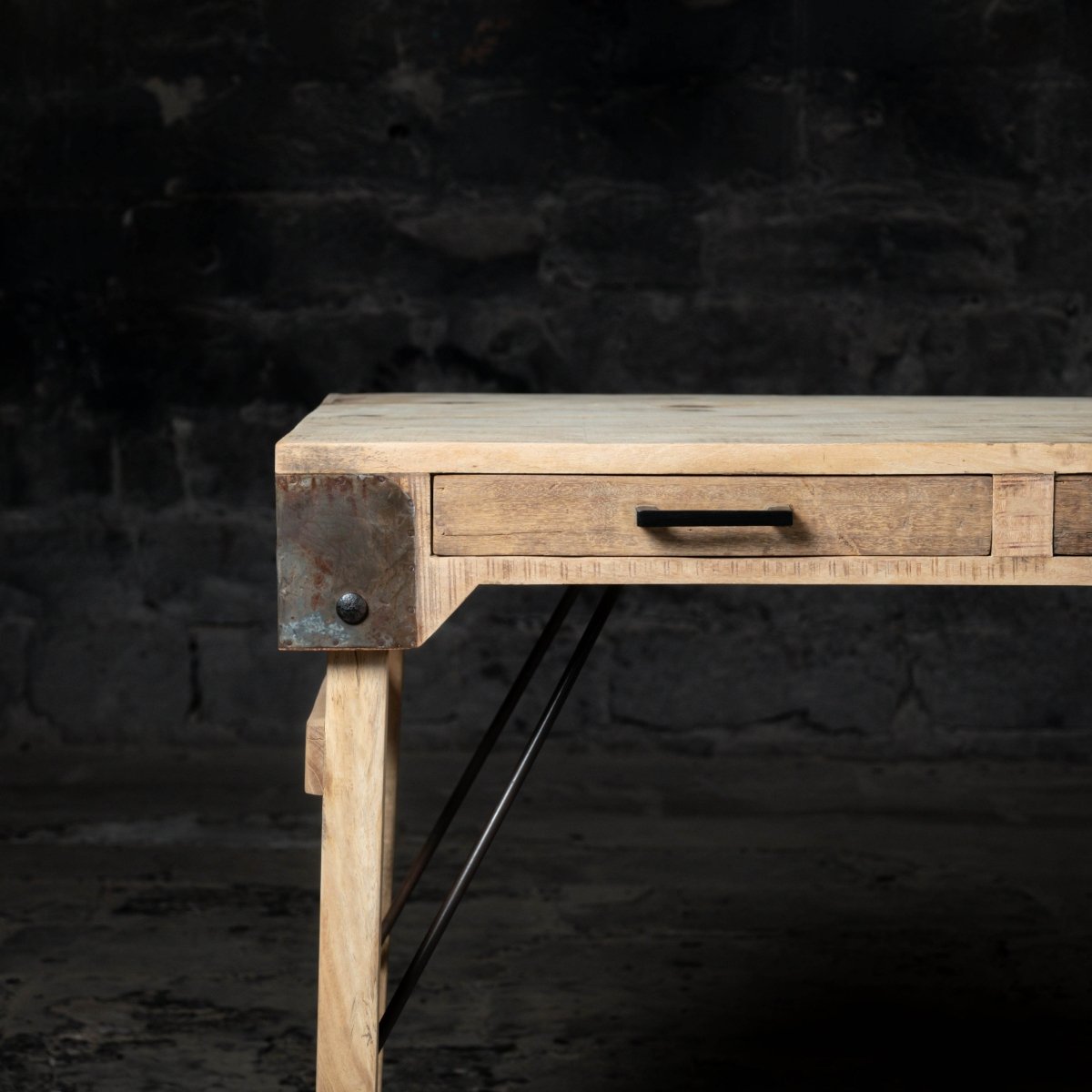 Crafted from salvaged materials, this desk showcases the natural imperfections and unique character of reclaimed wood. Its vintage aesthetic complements any decor style, making it perfect for a home office, study, or living area. Versatile in use, it can serve as a writing desk, console table, or entryway piece, adding charm and functionality to any space.