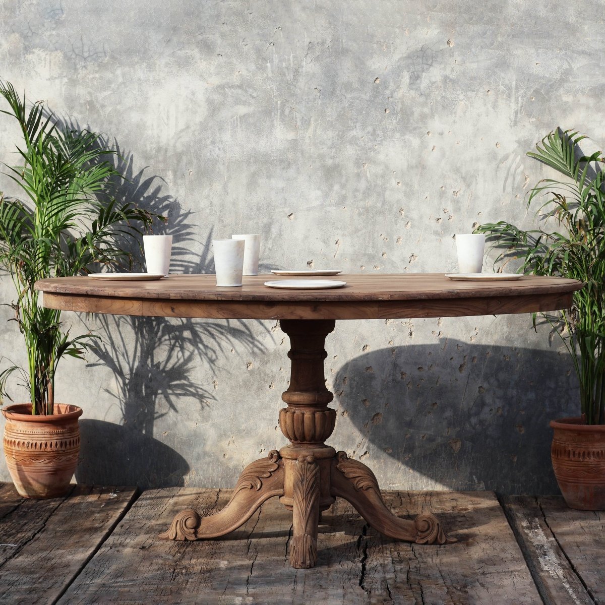• Material: Made from reclaimed teakwood, the Aurelio Round Table combines strength with sustainability. The wood’s natural characteristics are preserved, ensuring durability and an eco-friendly choice.