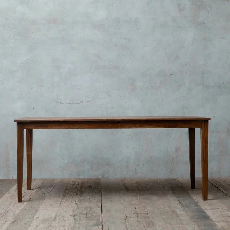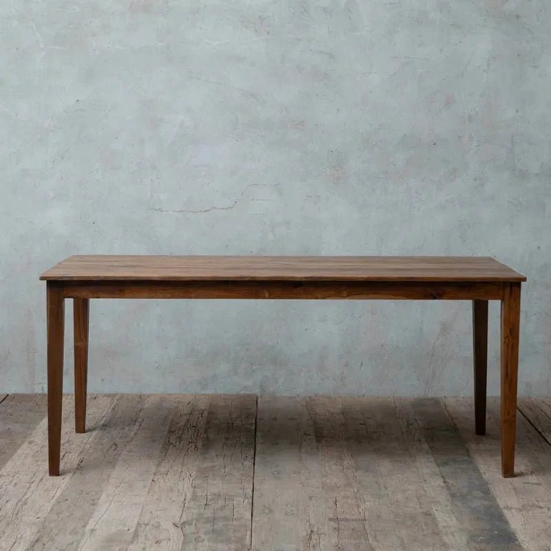 The Luciana Dining Table, made from reclaimed teakwood, combines traditional elegance with modern durability. Its striking design and sturdy build make it a perfect centerpiece for your dining area.