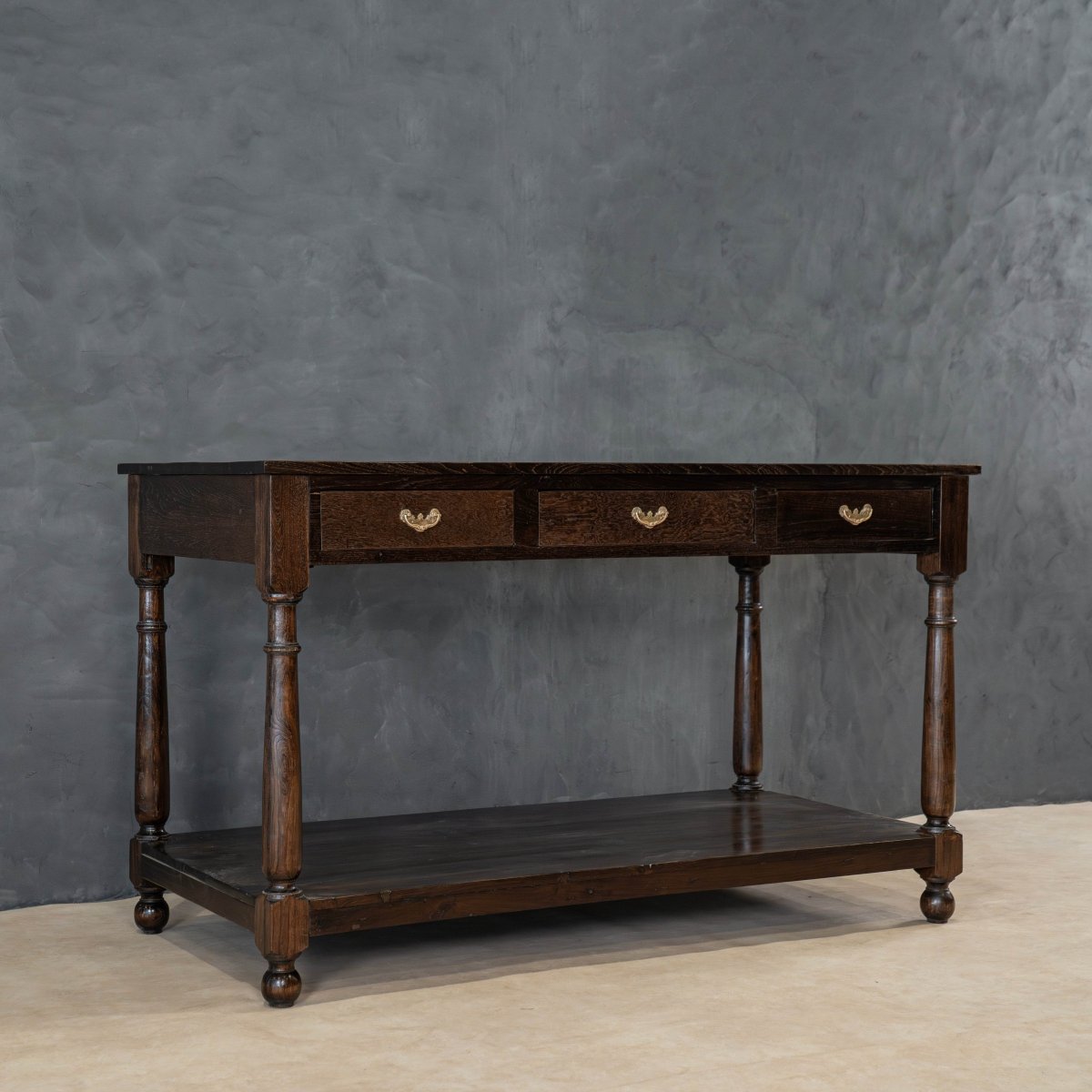 The Aujl Kitchen Counter Table, crafted from reclaimed wood, combines sustainability with practical design. Featuring a sturdy build and a single shelf for added storage, it’s an ideal addition to kitchens or dining areas.