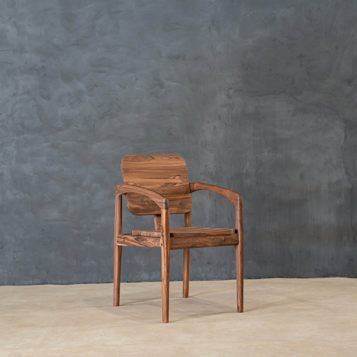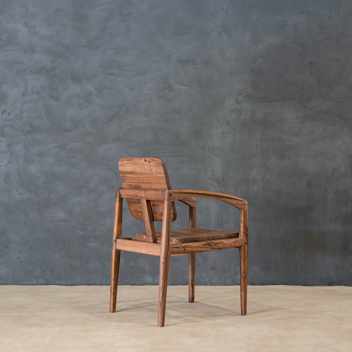 Crafted from wood reclaimed from old structures, each Adios Chair features unique grain patterns, warm tones, and subtle imperfections—ensuring every piece is one-of-a-kind. The natural wood finish enhances rustic charm while maintaining clean modern lines, appealing to shoppers seeking natural teak dining chair or vintage reclaimed wood seating