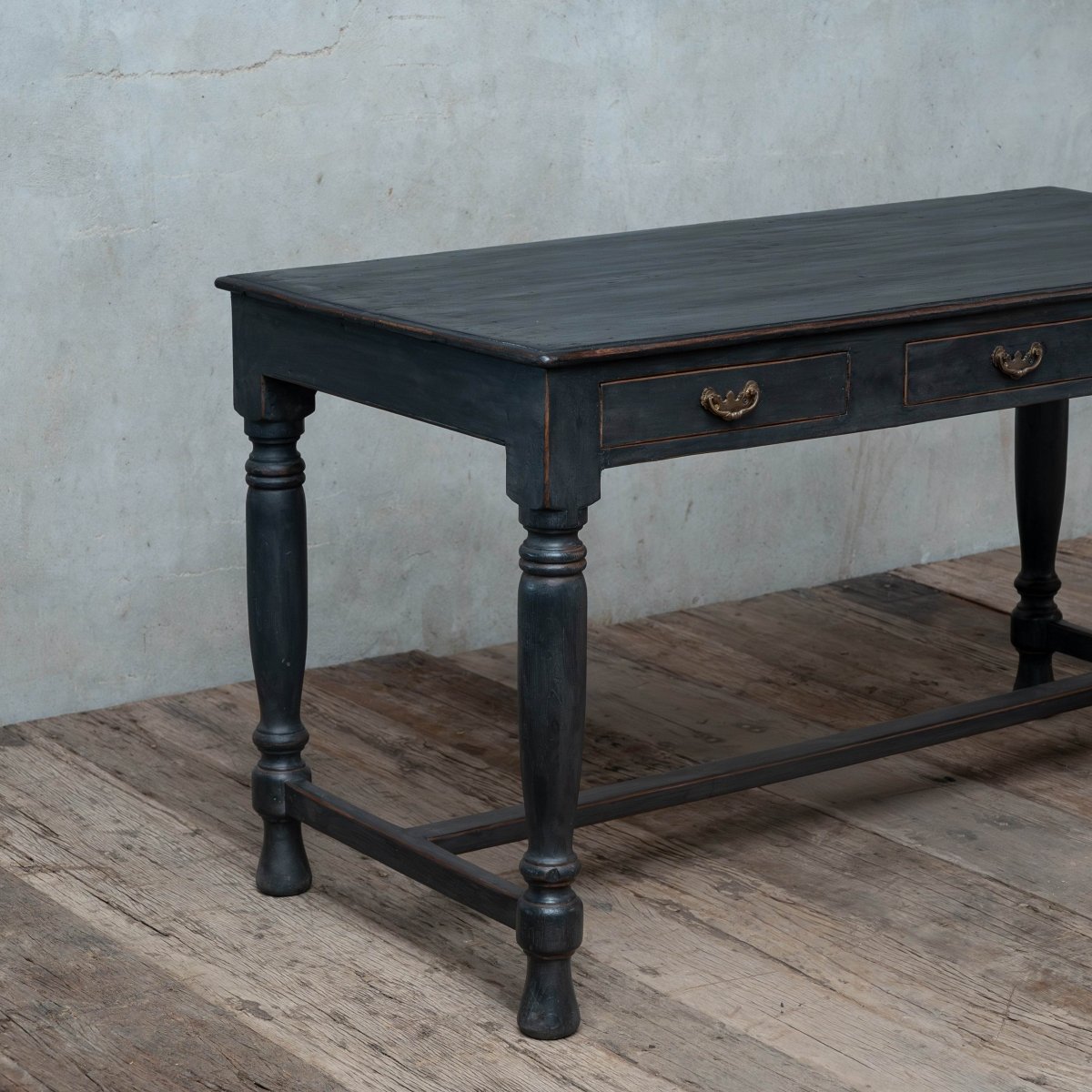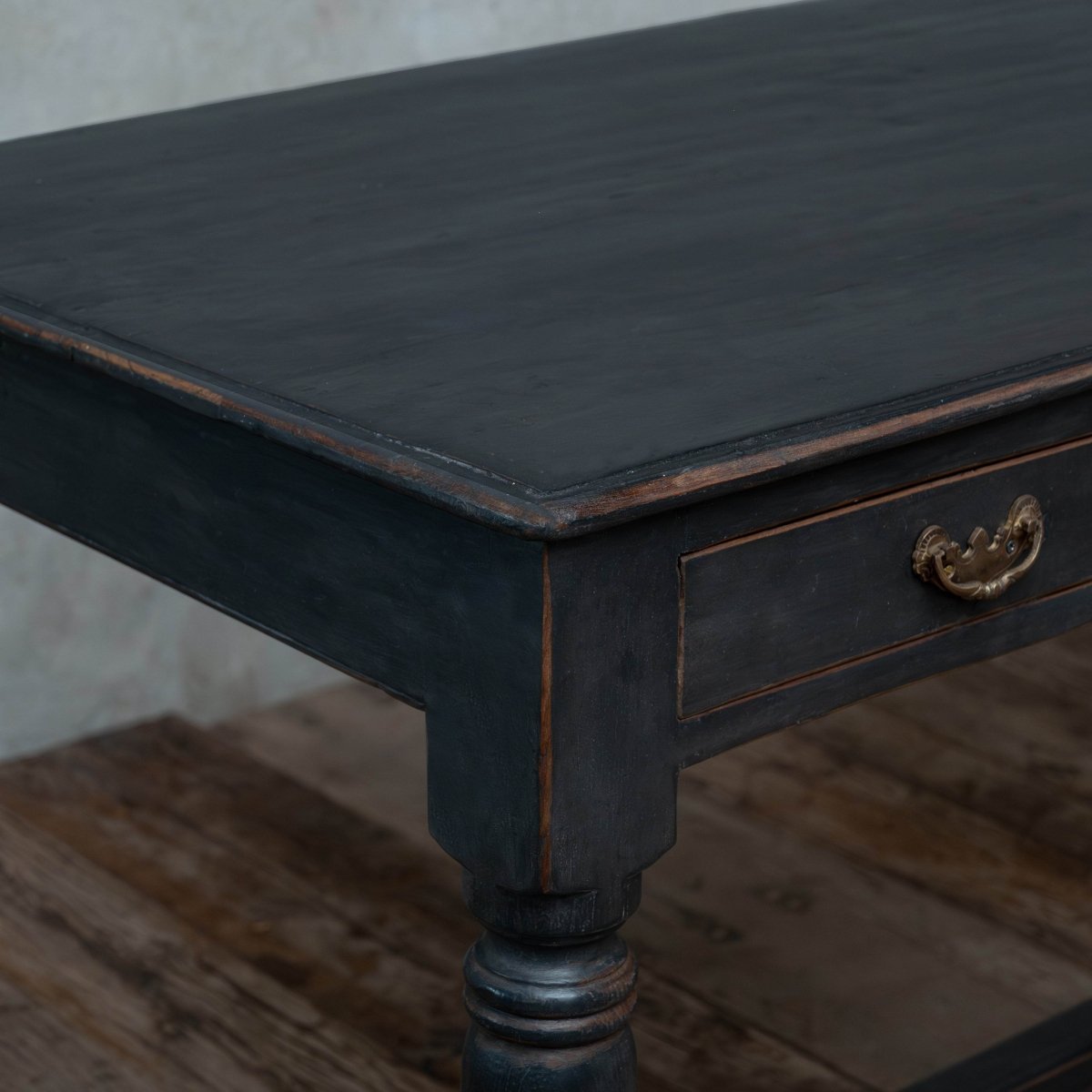 At the heart of the Alco Study Table is its commitment to sustainability and quality. Crafted from reclaimed teak wood, every plank tells a story — rescued, refinished, and given a second life. This eco-friendly approach reduces waste and supports responsible sourcing. The Antique Dark Grey finish accentuates the grain, knots, and natural character of the wood without hiding its origins. Fine carpentry details such as traditional turned legs, smooth dovetail joints, and a solid top attest to the artisanal care behind this vintage style study table. This reclaimed wood study desk is built to last, resisting warping and wear even in daily use.